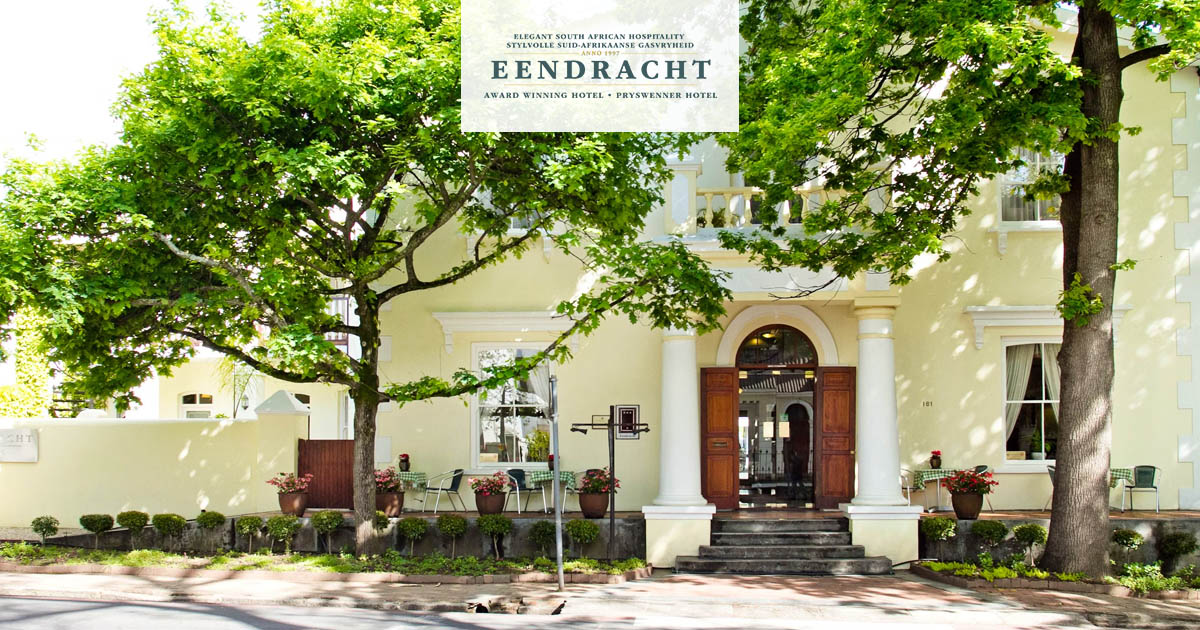 South Africa's oldest inn, operating since 1802 on historic Church Street. The Heritage Wing preserves original yellowwood beams and Georgian fireplaces; the Garden Wing offers contemporary suites around a courtyard fig tree. Pool, award-winning restaurant, and cellar bar. Rooms from R2,200/night including breakfast.